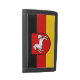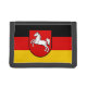 Wallet with flag of Lower Saxony; design with horizontal tricolor of black, red and yellow (golden), with state’s emblem with an illustration of a white horse in the center