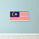 This design features the national flag of Malaysia, which is a country in Southeast Asia. The federal constitutional monarchy of Malaysia consists of thirteen states and three federal territories, separated by the South China Sea into two regions, Peninsular Malaysia and Borneo's East Malaysia. Peninsular Malaysia shares a land and maritime border with Thailand and maritime borders with Singapore, Vietnam, and Indonesia; East Malaysia shares land and maritime borders with Brunei and Indonesia and a maritime border with the Philippines and Vietnam. The capital and largest city of Malaysia is Kuala Lumpur, while the seat of the federal government is Putrajaya.