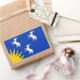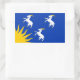 Sticker with design with a flag of historic county of Merioneth, in Wales, Great Britain; blue azure flag with three white goats and yellow sun