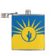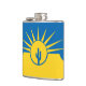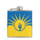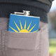Vinyl wrapped flask with flag of city Mesa, Arizona; yellow and blue flag with stylized illustrations of desert, cactus and rising sun