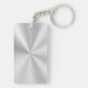 Rectangular double-sided acrylic keychain with an image of the red, green and white of the flag of Mexico. Gleaming silver back.