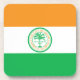 Coasters with flag of city of Miami, Florida; flag with three horizontal bands of orange, white and green with emblem with an illustration of a palm tree in the center