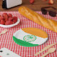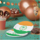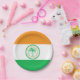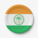 Paper Plate with flag of city of Miami, Florida; flag with three horizontal bands of orange, white and green with emblem with an illustration of a palm tree in the center