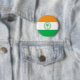 Round Button with flag of city of Miami, Florida; flag with three horizontal bands of orange, white and green with emblem with an illustration of a palm tree in the center