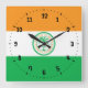 Clock with flag of city of Miami, Florida; flag with three horizontal bands of orange, white and green with emblem with an illustration of a palm tree in the center