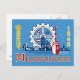 Postcard with flag of city of Milwaukee, Wisconsin; light blue flag with city panorama