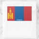 The Flag of Mongolia (Mongolian: Монгол улсын төрийн далбаа, State flag of Mongolia) consists of three equal bands, of alternating red, blue and red, with the soyombo national symbol[1] centering the first red band in yellow. The central blue band is described as the eternal blue sky, while the side red bands represent the ability of Mongolia to thrive in its harsh environment. The soyombo is a columnar arrangement of abstract and geometric representations of fire, sun, moon, earth, water, and the Taijitu or (Yin-Yang) symbol. The current flag was adopted on February 12, 1992, after the transition of Mongolia to a democracy. It is similar to the flag of 1949, except for the removal of the socialist star on top of the Soyombo.