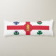 Body Pillow with the flag of Montreal, the most populous city in the province of Quebec, Canada. A white flag with a red cross, a white pine, a blue Fleur-de-lys, a red Rose of Lancaster, a shamrock, and a thistle