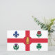 This design features the flag of Montreal (named Montréal in French), which is the most populous city in the Canadian province of Quebec. Montreal is also the second most populous city in the whole of Canada. It is named after Mount Royal, the triple-peaked hill in the heart of the city. However, the city was founded in 1642 as Ville-Marie, meaning "City of Mary". The city is centred on the Island of Montreal and a few much smaller peripheral islands, the largest of which is Île Bizard. Montreal is located around 120 miles east of the national capital Ottawa, and 160 miles south-west of the provincial capital, Quebec City.