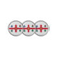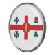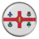 Golf Ball Marker with the flag of Montreal, the most populous city in the province of Quebec, Canada. A white flag with a red cross, a white pine, a blue Fleur-de-lys, a red Rose of Lancaster, a shamrock, and a thistle