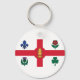 Keychain with the flag of Montreal, the most populous city in the province of Quebec, Canada. A white flag with a red cross, a white pine, a blue Fleur-de-lys, a red Rose of Lancaster, a shamrock, and a thistle