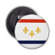 Button bottle opener with flag of city of New Orleans, Louisiana; white flag with red and blue stripes and three golden fleur-de-lys