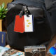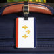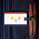 Luggage Tag with flag of city of Philadelphia, Pennsylvania; flag with three vertical bands of blue and yellow with city’s coat of arms in the center