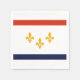 Paper napkin with flag of city of New Orleans, Louisiana; white flag with red and blue stripes and three golden fleur-de-lys