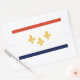 Sticker with flag of city of New Orleans, Louisiana; white flag with red and blue stripes and three golden fleur-de-lys