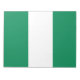 This design features the national flag of Nigeria (officially the Federal Republic of Nigeria), which is a sovereign country located in West Africa. Nigeria has borders with Niger in the north, Chad in the northeast, Cameroon in the east and Benin in the west. Its southern coast is on the Gulf of Guinea in the Atlantic Ocean. Nigeria is a federal republic comprising 36 states and the Federal Capital Territory, where the capital city of Abuja is located. Besides the capital, Nigeria has five cities with a population of over a million: Lagos, Kano, Ibadan, Benin City and Port Harcourt. Lagos is the largest city in Africa.