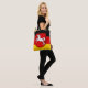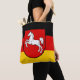 Tote bag with flag of Lower Saxony; design with horizontal tricolor of black, red and yellow (golden), with state’s emblem with an illustration of a white horse in the center