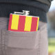 Vinyl wrapped flask with design with a flag of historic county of Northumberland, in England, Great Britain; red and yellow flag based on the St. Oswald banner