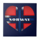 Decorative ceramic tile features Norway Flag heart shaped cutout on blue background