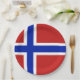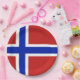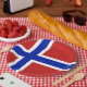 The flag of Norway is a red with an indigo blue Scandinavian cross fimbriated in white that extends to the edges of the flag; the vertical part of the cross is shifted to the hoist side in the style of the Dannebrog, the flag of Denmark.