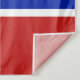The flag of Norway is a red with an indigo blue Scandinavian cross fimbriated in white that extends to the edges of the flag; the vertical part of the cross is shifted to the hoist side in the style of the Dannebrog, the flag of Denmark.