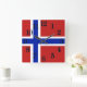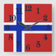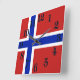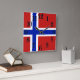 The flag of Norway is a red with an indigo blue Scandinavian cross fimbriated in white that extends to the edges of the flag; the vertical part of the cross is shifted to the hoist side in the style of the Dannebrog, the flag of Denmark.