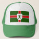 Hat with design with a flag of historic county of Nottinghamshire, in England, Great Britain; green flag with a red cross, with inescutcheon with illustration of Robin Hood in the centre