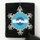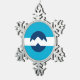 Snowflake Ornament with a design with the flag of Ogden, Utah. A blue and white flag with mountain peaks in the center