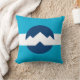 A pillow with a design with the flag of Ogden, Utah. A blue and white flag with mountain peaks in the center