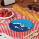 Paper Plate with a design with the flag of Orem, Utah. A blue, white, and yellow flag with mountain peaks and the sun in the center