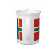 Pitcher with design with a flag of historic county of Orkney, in Scotland, Great Britain; red flag with blue and yellow Nordic cross