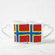 Lovers Mug with design with a flag of historic county of Orkney, in Scotland, Great Britain; red flag with blue and yellow Nordic cross