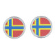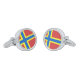 Cufflinks with design with a flag of historic county of Orkney, in Scotland, Great Britain; red flag with blue and yellow Nordic cross