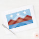 Sticker with a design with the flag of Peoria, Arizona. A blue, brown, and white flag with mountain peaks and three stars