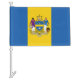 Car Flag with flag of city of Philadelphia, Pennsylvania; flag with three vertical bands of blue and yellow with city’s coat of arms in the center