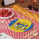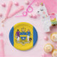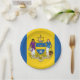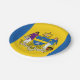 Paper Plate with flag of city of Philadelphia, Pennsylvania; flag with three vertical bands of blue and yellow with city’s coat of arms in the center