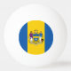 Ping pong ball with flag of city of Philadelphia, Pennsylvania; flag with three vertical bands of blue and yellow with city’s coat of arms in the center