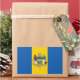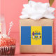 Sticker with flag of city of Philadelphia, Pennsylvania; flag with three vertical bands of blue and yellow with city’s coat of arms in the center