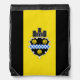 Drawstring Bag with flag of city of Pittsburgh, Pennsylvania; flag with three vertical bands of black and yellow with illustration of castle and shield in the center