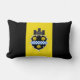 Lumbar Pillow with flag of city of Pittsburgh, Pennsylvania; flag with three vertical bands of black and yellow with illustration of castle and shield in the center