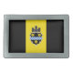 Belt Buckle with flag of city of Pittsburgh, Pennsylvania; flag with three vertical bands of black and yellow with illustration of castle and shield in the center