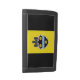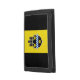 Wallet with flag of city of Pittsburgh, Pennsylvania; flag with three vertical bands of black and yellow with illustration of castle and shield in the center