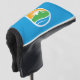 Golf Head Cover with a design with the flag of Provo, Utah. A blue flag with the Provo City logo in the center. The logo represents the Utah lake and nearby mountain peaks with the rising sun in the background