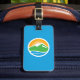 Luggage Tag with a design with the flag of Provo, Utah. A blue flag with the Provo City logo in the center. The logo represents the Utah lake and nearby mountain peaks with the rising sun in the background