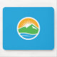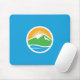 Mousepad with a design with the flag of Provo, Utah. A blue flag with the Provo City logo in the center. The logo represents the Utah lake and nearby mountain peaks with the rising sun in the background