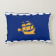 Pillow with the flag of Quebec City, the capital city of Quebec, Canada. A blue flag with a white outline and a yellow ship in the center