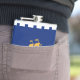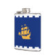 Flask with the flag of Quebec City, the capital city of Quebec, Canada. A blue flag with a white outline and a yellow ship in the center