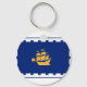 Keychain with the flag of Quebec City, the capital city of Quebec, Canada. A blue flag with a white outline and a yellow ship in the center