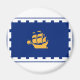 Magnet with the flag of Quebec City, the capital city of Quebec, Canada. A blue flag with a white outline and a yellow ship in the center