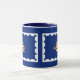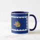 Mug with the flag of Quebec City, the capital city of Quebec, Canada. A blue flag with a white outline and a yellow ship in the center